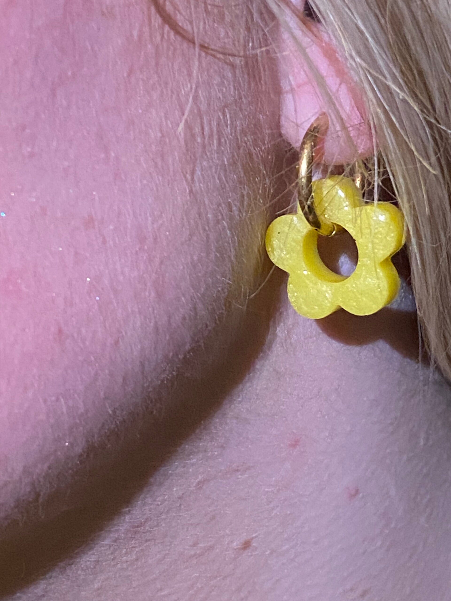 Envie d'un peut de folie avec de jolies couleurs 😊 voici de jolies Pampilles en forme de fleurs de tiaré de couleur jaune de 28 millimètres faites à la main en résine uv